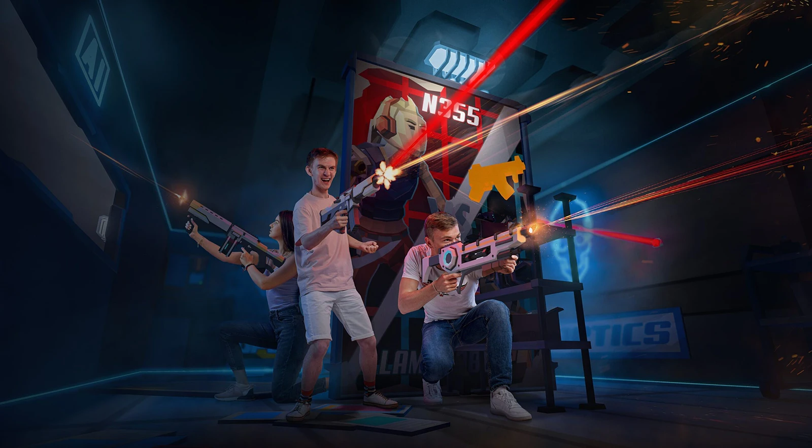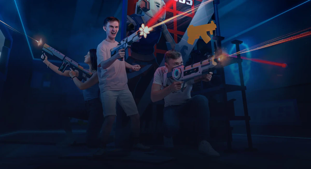 Играйте команда на команду в виртуальной реальности на арене 400 м2
