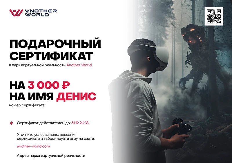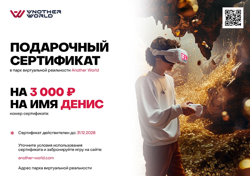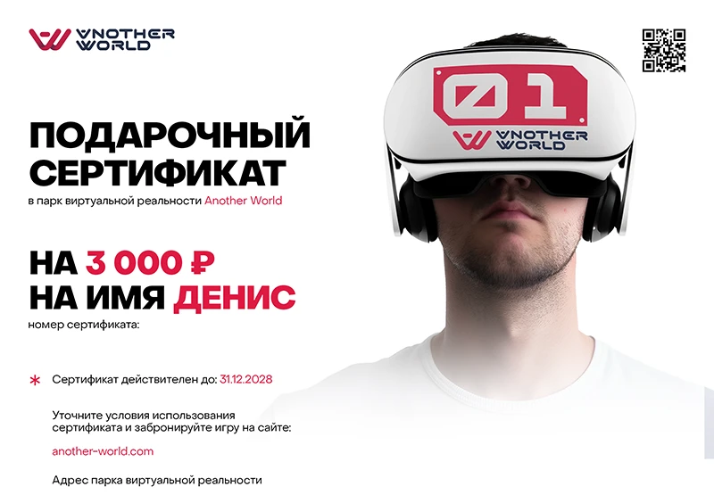 Сертификат можно получить самовывозом на нашей VR-арене.